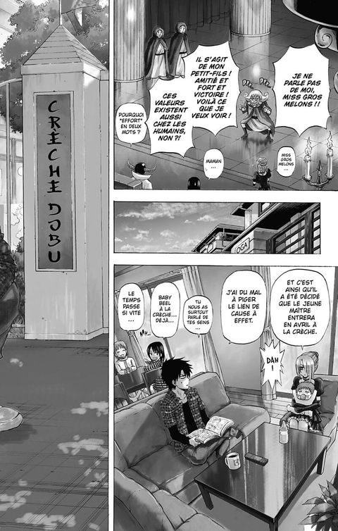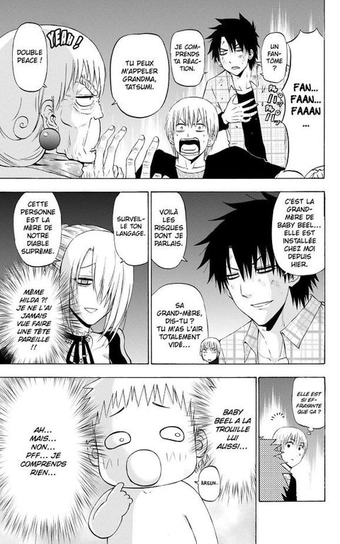 Existe-t-il être plus effrayant et caractériel que le Diable Suprême himself ? Oh oui… Sa mère !! Tous aux abris ! Grande-Mamy débarque sur Terre et a la gâchette facile lorsqu’il s’agit d’assouvir ses ambitions pour son dernier petit-fils ! Objectif : 100 amis !! La bande s’offre alors une petite cure de jeunesse (plus réussie pour certains que pour d’autres…) pour accompagner Baby Beel lors de ses premiers pas à la crèche ! Avant de tirer sa révérence, Oga & Cie vivent de dernières aventures où il est question d’île déserte, d'héroïsme, d’amour et de retour vers le futur !!! Vous reprendrez bien un peu de Beelzebub, n’est-ce pas ?