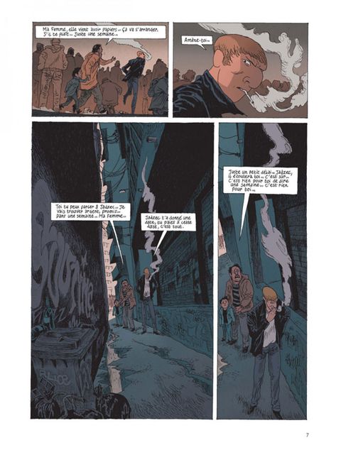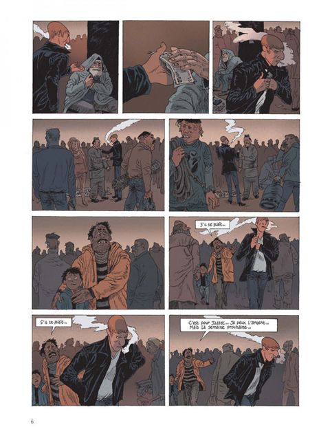 Pour une fois j'ai pris une bd dont les dessins ne me plaisaient pas trop. C'est un style que je n'aime pas vraiment. Mais au fil de la lecture, j'ai apprécié l'ambiance qui se dégageait de cette lecture. C'est sombre et sans compromis. Pas une once d'humour, que du noir.