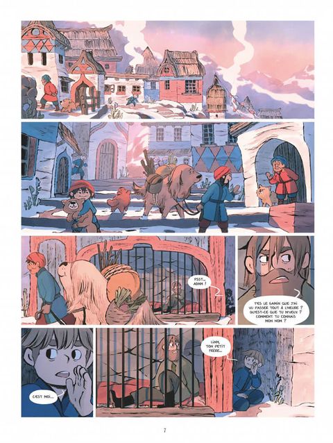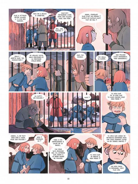 La fin du voyage. Molly, Liam et Sarah ont réussi miraculeusement à s'extirper du labyrinthe caverneux qu'ils empruntaient pour atteindre les terres mortes. Ils ont été secourus par des villageois éleveurs de chiens. Ils sont encore sous le choc de ce qui s'est passé en sortant de la grotte, un éboulement les a séparés de leurs compagnons de route et le sort de ces derniers est incertain. Tandis que les habitants du village envoient une expédition pour les secourir, les enfants ne peuvent faire qu'une chose : attendre et espérer... L'arrivée au village leur a permis une découverte inespérée. Liam a retrouvé Adam, son frère qu'il n'avait pas vu depuis 10 ans est bien vivant. Tant de questions à lui poser... Qu'est-il arrivé aux autres hommes ? Où en est la guerre ? Le père de Molly est-il encore vivant ? Pour obtenir des réponses à toutes ces questions, et trouver un remède au mal qui ronge Molly et Liam, le voyage se poursuit. Les blessures se font chaque jours plus profondes mais le groupe devra encore affronter moult péripéties pour atteindre les terribles terres mortes en restant soudé. Bergères Guerrières est de ces séries qui se bonifient d'album en album. Dans ce quatrième et dernier tome, Jonathan Garnier et Amélie Fléchais signent le point final d'une oeuvre éblouissante. Un objet graphique somptueux pour une épopée merveilleuse, magique et inoubliable peuplée de personnages incroyablement attachants.