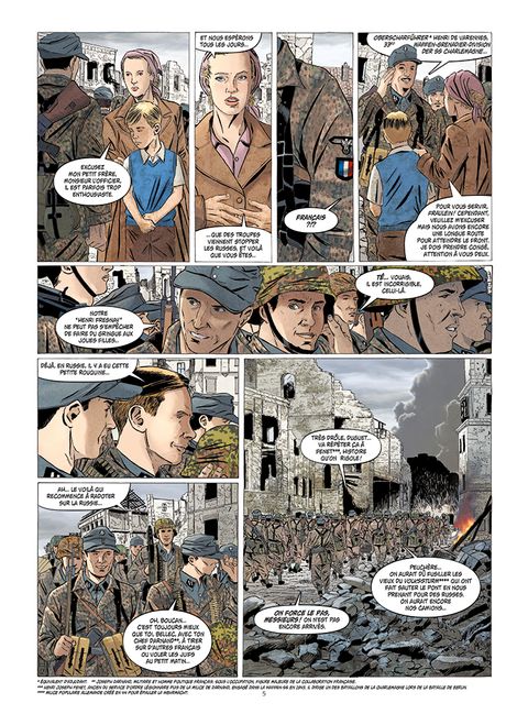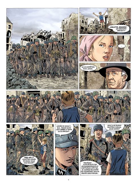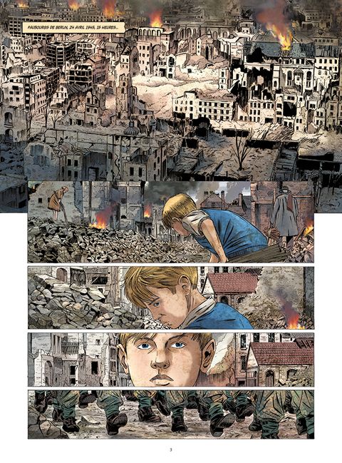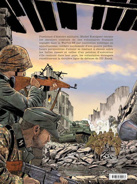 Integrale de la série Avril-mai 1945... Les russes à l'est, les américains à l'ouest, Berlin est cerné de toute part. La ville n'est plus qu'un champs de ruine qui ne résiste que sur le courage de quelques militaires. Parmi ceux-ci, la Division Charlemagne, une armée constituée de combattants français, engagés volontaires au sein de la Wehrmacht. Ces égarés de l'histoire vont se retrouver en première ligne dans la défense de la ville, soldats de l'inutile face à l'inéxorable avancée des armées alliées.Michel Koeniguer raconte en trois parties la chute de Berlin et le destin singulier de soldats français en 1045. Pour la première fois en un seul volume, ce récit fort et puissant trouve ici un écrin à sa mesure.