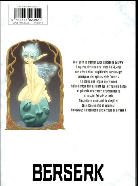 Série fondatrice et emblématique de la dark fantasy, Berserk se déploie depuis près de quarante tomes dans une fresque à la fois épique, dérangeante et bouleversante. Il était plus que temps qu'un data book lui soit consacré ! Avec le Berserk Official Guide book, redécouvrez la saga et ses sombres secrets, depuis le trouble passé de Guts jusqu'à ses infâmes adversaires. Chaque personnage est présenté avec ses compétences et son histoire, ainsi que ses relations et ses pouvoirs. Ce guide vous propose également une visite guidée de l'atelier de Kentaro Miura, ainsi qu'une longue interview où l'auteur révèle des informations inédites sur sa saga ! Profitez enfin de ses crayonnés et recherches sur les personnages, ainsi que de magnifiques illustrations couleurs ! Un data book indispensable.