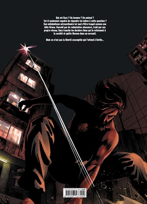 Qui est Gary ? Un homme ? Un animal ? Est-il seulement capable de répondre lui-même à cette question ? Son métabolisme extraordinaire lui vaut d'être traqué comme une bête féroce. Harcelé par de redoutables chasseurs, trahi par son propre réseau, Gary tranche les derniers liens qui le retiennent à la société et quitte Moscou dans un cercueil. Mais ce n'est pas la liberté escomptée qui l'attend à Berlin...