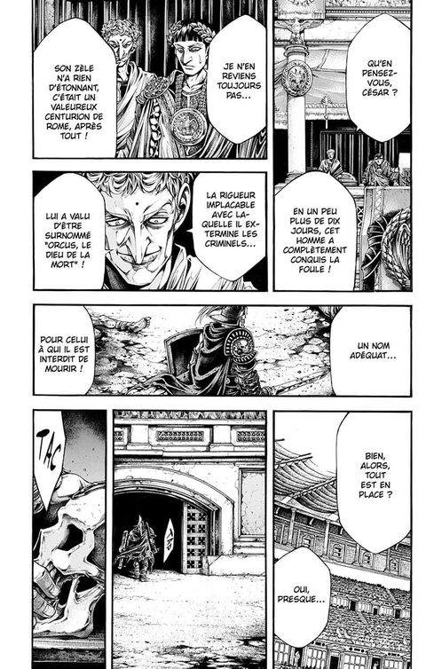 C'est comme ça que l'auteur Masasumi Kakizaki exprime ce qu'il a voulu dessiner. Eh bien il ne s'est pas trompé. Les deux derniers tomes sont tout aussi efficaces que les précédents. Les héros de la résistance à l'empire romain ont une volonté en fer forgé et les romains sont les pires (...) Voir le commentaire