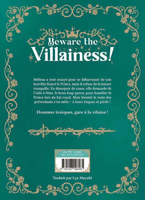 Mélissa a tout essayé pour se débarrasser de son horrible fiancé le Prince, mais il refuse de la laisser tranquille. En désespoir de cause, elle demande de l'aide à Nine, le beau loup-garou, pour humilier le Prince lors du bal royal. Mais bientôt le reste des prétendants s'en mêle - à leurs risques et périls !Hommes toxiques, gare à la vilaine !