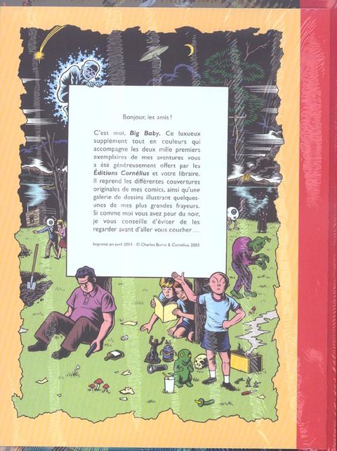 On ne présente plus Charles Burns, auteur du plus beau feuilleton graphique de la décennie, et on a tort. En effet, bien avant Black Hole ( Delcourt ), ce maître du noir et blanc produisit une ébouriffante série de chefs-d'oeuvre au trait magnifiquement ciselé et à l'ambiance d'une noirceur empreinte de cauchemar. Lorsqu'il dessine Big Baby, Charles Burns maîtrise à la perfection le style qui le rendra justement célèbre. Dans le prolongement des fameux EC Comics, il mène ici une étonnante exploration des désordres mentaux et de la violence ordinaire, avec cet humour tordu qui lui tient lieu de signature.