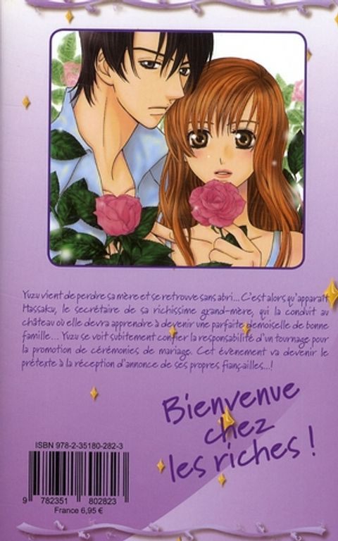 Yuzu est subitement projetée à la place dhéritière de sa richissime grand-mère, ce qui a pour effet de provoquer beaucoup de jalousies dans son entourage... Elle se trouve confrontée à de nombreux troubles au sein de son lycée, en partie à cause dIyo, le garçon qui prétendait à lhéritage avant son arrivée... Mais linstigateur principal des agressions sur Yuzu nest pas celui quon pense... Yuzu se voit subitement confier la responsabilité dun tournage pour la promotion de cérémonies de mariage. Cet événement va devenir le prétexte à lannonce de ses propres fiançailles... Auteur de Tout Sauf un Ange, Takako Shigematsu croque de belle manière une héroïne très attachante. Un manga servi par un scénario plein de rebondissements.
