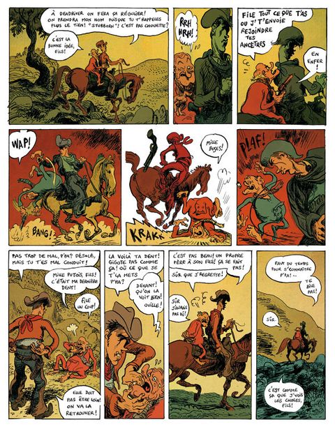 Mazette quel Western ! Du Montreuil régale avec de superbes illustrations pour un scénario plus qu'original ! Des personnages plus au meilleur de leur forme, des tueurs avec des questions existentielles et une absence paternelle douloureuse.