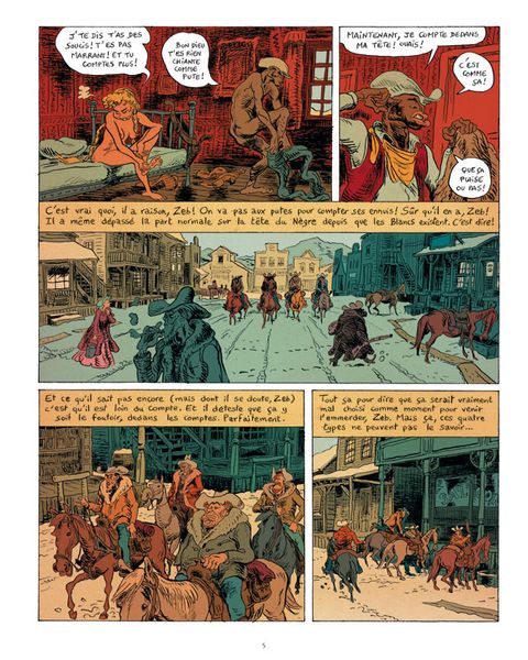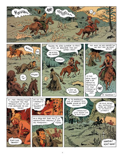 À l'issue du tome 2, la situation était des plus mouvementées : Ned a découvert que sa mère était indienne, et furieux, s'est mis à dégommer toute la bande de Sheep-Buggy. Maintenant, il délire, se sent devenu un vrai indien et a disparu Dieu sait où, certainement à la recherche de sa mère. Zeb va en taule, lui aussi, après avoir massacré une bande de cow-boys qui l'ont traités de négro. « Chez moi, en Louisiane, on dansait aux enterrements ! Et aux naissances on pleurait ! C'est parce qu'on descend des esclaves ! Pour le nègre, la mort est une délivrance, et la vie un fardeau !! » Le shérif en fait son allié, car il veut retrouver les soeurs Hawkline, Holly Dolly et Magic Child, accusées des pires maux, recherchées pour les crimes du Bigfoot. D'ailleurs savent-elles réellement qui elles sont vraiment ?