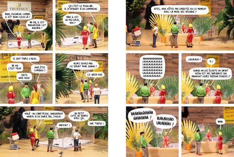 Un concept complètement original : deux frères qui mettent en scène de petits personnages de maquette, dans des décors faits maison bourres de clins d'oeil et de gags, pour des échanges complètement loufoques... Un peu dans la fibre de Fabcaro.