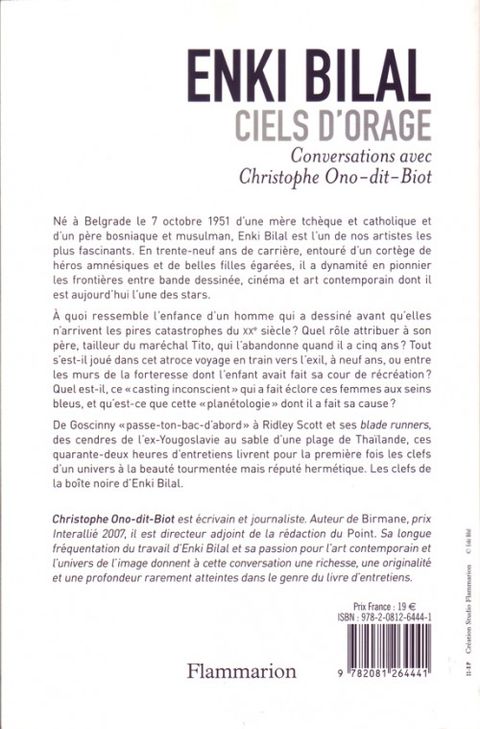 La version de 2022 (Sublime Chaos) est grandement enrichie par rapport à la version initiale de Ciel d'Orage. Ouvrage de référence sur l'un des plus grands maîtres de la bande dessinée. Né à Belgrade en 1951 d'une mère tchèque et catholique et d'un père bosniaque et musulman, Enki Bilal a dynamité les frontières entre bande dessinée, cinéma et art contemporain. À quoi ressemble ? Quel rôle attribuer à son père, tailleur du maréchal Tito, qui l'abandonne quand il a cinq ans ? Tout s'est-il joué dans cet atroce voyage en train vers l'exil, à neuf ans, ou entre les murs de la forteresse dont l'enfant avait fait sa cour de récréation ? Quel est-il, ce « casting inconscient » qui a fait éclore ces femmes aux seins bleus, et qu'est-ce que cette « planétologie » dont il a fait sa cause ? De Goscinny à Ridley Scott, des cendres de l'ex-Yougoslavie au sable d'une plage de Thaïlande, ces entretiens livrent les clefs d'un univers fascinant
