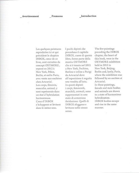 Ce catalogue est publié à l'occasion de la présentation de Inbox, une installation de Enki Bilal à la Biennale d'Art Contemporain à Venise, du 7 mai au 2 août 2015. Dans le catalogue seront reproduits les deux tableaux qui se trou-vent à l'intérieur de l'installation, et d'autres peintures et dessins sur le même sujet, avec des textes et des photos de Bilal prises à Venise pendant le montage. On retrouve ici le romantisme passion-nel et sombre qui caractérise son oeuvre. L'artiste insiste sur la fragilité et les incertitudes de notre mémoire visuelle, sur l'ambivalence et la matérialité des images. Il insiste sur la nécessité de se concentrer sur l'instant présent, et de faire appel à la sensibilité et aux ressources intuitives du spectateur. Celui-ci pourra ainsi s'immerger au coeur de l'oeuvre, dans une poétique à la fois physique et mentale. Eric Leroy, à l'initiative du projet, ajoute : « Enki Bilal à la Biennale de Venise prouve une nouvelle fois l'internationalisation de son travail et sa renommée au-delà de nos fron-tières. Avec cette installation, Enki Bilal nous surprend à nouveau et nous montre qu'il touche à tous les médiums. »
