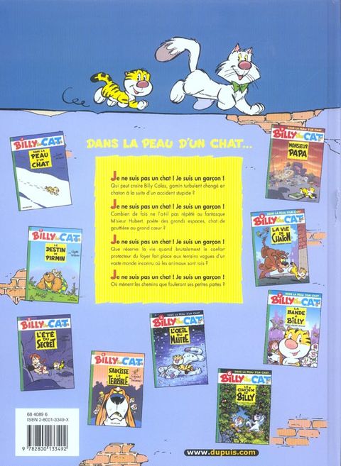 Pour Billy, être un garçon dans un corps de chaton a bien des avantages. En tant que garçon, il sait lire, commander en ligne des pizzas aux anchois et utiliser les transports en commun. Et en tant que chat, il peut traîner la nuit dans les rues de la ville sans rendre de comptes à personne et fréquenter n'importe quel chat de gouttière... comme Monsieur Hubert par exemple. Pourtant, malgré les apparences, les deux compagnons ne sont pas tout à fait heureux : ils en veulent à leur père ! Celui de Monsieur Hubert, ex-vedette du cirque reconverti en matou parvenu, n'a pas hésité à renier son fils pour les beaux yeux de sa douce et tendre... pas si tendre que ça. Billy reproche au sien d'avoir toujours fait passer son boulot avant son fils, à l'époque où il était encore un petit garçon. Alors que Billy décide d'en faire voir de toutes les couleurs à "Monsieur Papa", il découvre par hasard les plans démoniaques que réservés à son père par deux collègues envieux... Alors ni une, ni deux, Billy part à la rescousse de son père avec l'aide de Monsieur Hubert.