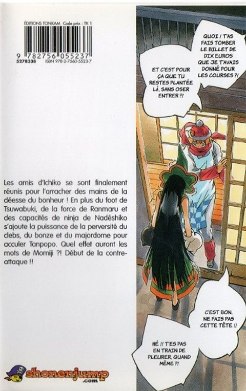 Les amis d'Ichiko se sont finalement réunis pour l'arracher des mains de la déesse du bonheur ! À la maîtrise du ballon de Tsuwabuki, à la force de Ranmaru et aux capacités de ninja de Nadéshiko s'ajoute la perversité sans limite du clebs, du bonze et du majordome pour acculer Tanpopo. Quel effet auront les mots de Momiji à l'attention d'Ichiko ? Début de la contre-attaque !