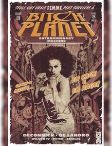 Le futur. Le monde est gouverné par le diktat des hommes. Les femmes qui ne se plient pas aveuglément à leur volonté doivent être « rééduquées ». À l'issue d'un discours évangélisateur psalmodié en boucle dans leur sommeil, elles sont expédiées dans l'établissement auxiliaire de conformité, une prison pour femmes en orbite au-dessus de la Terre. Ces rebelles qui rejettent les règles masculines vont ainsi découvrir les joies de la vie carcérale dans cette boîte de métal que l'on appelle « Bitch Planet ». Entre pamphlet social, miroir de notre bonne vieille société patriarcale et récit d'aventure futuriste enlevé, Bitch Planet nous invite à découvrir un monde où les femmes se rebellent contre l'injustice et les disparités du consumérisme moderne. Un récit engagé en forme de coup de poing narratif et graphique, orchestré par la brillante Kelly Sue DeConnick (Pretty Deadly, Captain Marvel) et Valentine De Landro (X-Factor). En bonus à cette édition Glénat Comics : une couverture inédite, un appareil critique sur le féminisme et la culture populaire rédigé par Pia-Victoria Jacqmart, des interviews exclusives des auteurs, des fausses-pubs, et plein d'autres surprises !
