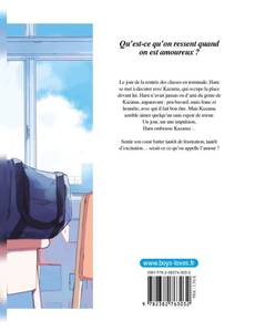 Le jour de la rentrée des classes en terminale, Haru se met à discuter avec Kazama, qui occupe la place devant lui. Haru n'avait jamais eu d'ami du genre de Kazama, auparavant : peu bavard, mais franc et honnête, avec qui il fait bon vivre. Mais ce dernier semble aimer quelqu'un sans espoir de retour. Un jour, sur une impulsion, Haru embrasse Kazama...