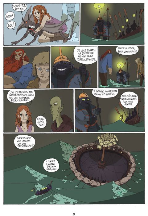 Bjorn, Sigrid, leurs compagnons et leurs dragons débutent ce nouveau volume de leurs pérégrinations infernales sur une plage de la mer des enfers, où ne tardent pas à venir les chercher des serviteurs de la grande reine Mamafidjar - sans que l'on sache au juste si leur statut est celui d'invités ou de prisonniers. Mis en présence de la souveraine après avoir traversé la fascinante ville des morts peuplée d'innombrables âmes, le petit groupe est bientôt fixé : Mamafidjar les condamne à la prison. Pour s'être rebellé contre ce jugement, Bjorn fait l'objet d'un régime sévère. Mais, contre toute attente, réussira à attendrir la féroce Mamafidjar. en se plongeant une dague dans le coeur pour l'amour de Sigrid ! Est-ce vraiment la fin des aventures du jeune Morphir ?