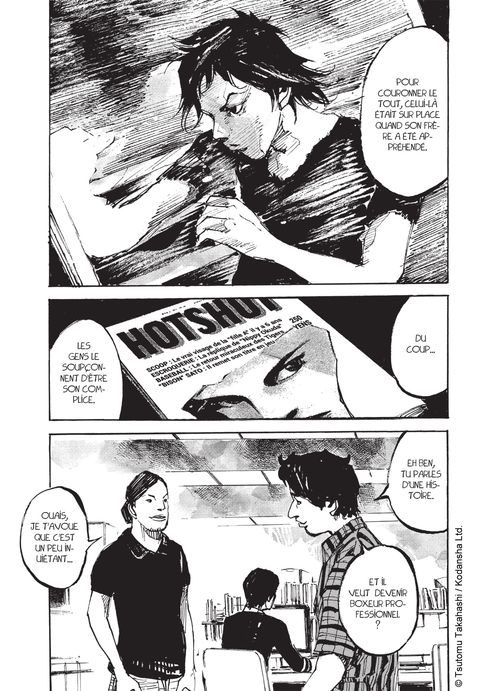 chronique complète sur : https://motstordusetbullescarrees.blogspot.com/2022/06/black-box-tsutomu-takahas... 🥊Ryoga Ishida patit d'une certaine réputation : fils et frère de meurtrier, lui même tueur présumé, il est avant tout un boxeur de talent, persuadé de sa supériorité et prêt à gravir une à une les marches du succès. 🖊Dernière création de Tsutomu Takahashi (auteur (...) Voir le commentaire