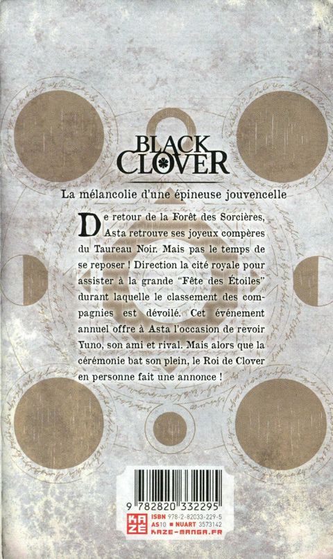 Dans un monde régi par la magie, Yuno et Asta ont grandi ensemble avec un seul but en tête : devenir le prochain Empereur-Mage du royaume de Clover. Mais si le premier est naturellement doué, le deuxième, quant à lui, ne sait pas manipuler la magie. C'est ainsi que lors de la cérémonie d'attribution de leur grimoire, Yuno reçoit le légendaire grimoire au trèfle à quatre feuilles tandis qu'Asta, lui, repart bredouille. Or plus tard, un ancien et mystérieux ouvrage noir décoré d'un trèfle à cinq feuilles surgit devant lui ! Un grimoire d'anti-magie...