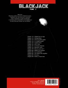 Black Jack, chirurgien sans diplôme qui opère dans la clandestinité et qui demande des sommes astronomiques pour ses interventions, est un personnage ténébreux et hors-la-loi. Il passe sa vie à sauver celle des autres. En revanche, la société médicale refuse de l'admettre comme médecin. Ils nient même son existence. Black Jack pratique tranquillement dans sa petite clinique avec son assistante Pinoko, qu'il a volontairement sauvé auparavant. Des patients, diagnostiqués avec des maladies rares, lui rendent visite avec espoir d'être enfin soignés, quelques soient les circonstances morales. Cette édition de luxe sort à l'occasion du 50eme anniversaire de la série (1973-2023).