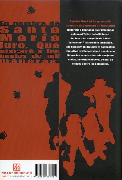 A peine Rock et Revy sont-ils revenus du Japon qu'un faussaire débarque à Roanapur pour demander refuge à l'Eglise de la Violence, déclenchant une pluie de balles sur la ville. A l'autre bout du monde. une bombe vient troubler le calme dans lequel les Lovelace vivaient depuis peu. Malgré les supplications de son Jeune maître. la terrible Roberta se met en chasse contre les coupables.