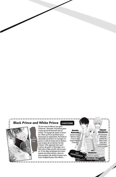 Comme toutes les filles, Yû a flashé sur la coqueluche de l'école, le « white prince » Shirakawa. Suite à la mutation de ses parents, elle intègre l'internat où vit Shirakawa. Mais si Yû pensait profiter de son nouveau logement pour se rapprocher du jeune homme, c'est raté ! Car Kurosaki le « black prince », aussi beau qu'insupportable, a bien décidé de venir gâcher le tableau...