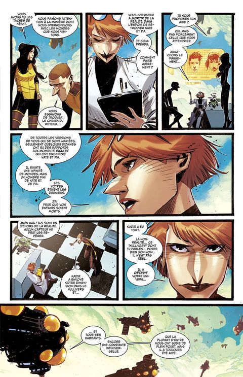 Les dimensionautes sont dispersés aux quatre plans. L'utilisation abusive du pilier a fini par ronger les fondements même de la réalité, de tout ce qui est, de tout ce qui a été et de tout ce qui sera. De son côté, Sara McKay essaie de composer avec l'héritage de son mari. Elle erre dans d'innombrables réalités à la recherche de réponses et tente de réparer ce qui peut encore l'être. Contenu vo : Contenu : Black Science vol. 8 (#35-38).