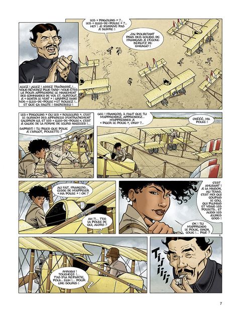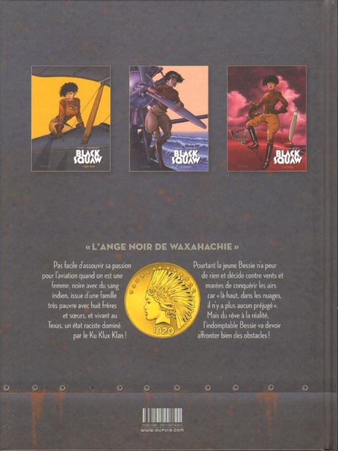 Bessie, l'extraordinaire aviatrice, gît inconsciente dans la fange d'une mare à cochons. Mais sa tête reste dans les nuages... Précisément ceux de sa jeunesse, à l'époque où elle avait quitté son Amérique natale pour la France, pays autorisant les femmes à prendre des cours d'aviation. Là, à l'école Caudron du Crotoy, dans une ambiance de camaraderie maladroite où de jeunes bourgeois blancs auront bien du mal à comprendre sa vie de femme noire, Bessie va devenir une pilote à l'infernale virtuosité. Mais aussi vivre des émois qui la marqueront à vie... Une vie qui sera peut-être brutalement interrompue si Bessie adulte ne vainc pas ses ennemis du Ku Klux Klan... Entre récit historique inspiré de la vie de l'aviatrice Bessie Coleman, palpitant récit d'aventure et touchante chronique de jeunesse, Yann et Henriet lèvent de nombreuses intrigues avant le grand final de leur emballante tétralogie Black Squaw !