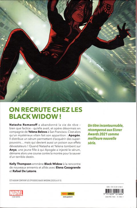 Black Widow T.2 - Tragique Apogée... Retrouvaille de la célèbre espionne en duo avec Yelena se faisant appeler dorénavant White Widow. Un récit se portant sur la poursuite d'un ennemi prénommé Apogée se prenant pour un dieu en distribuant un sérum permettant d'acquérir des super pouvoirs. Mais tout a un prix (...) Voir le commentaire