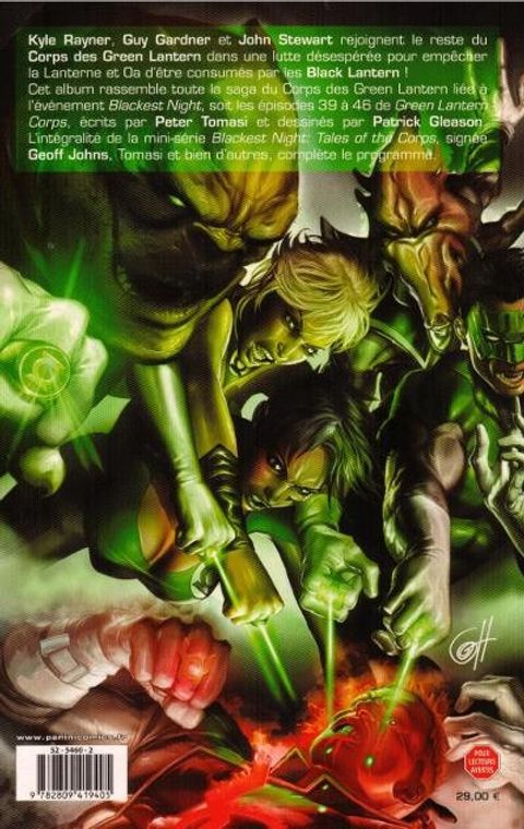Le crossover Blackest Night a mis en vedette Green Lantern dans les pages de DC UNIVERSE. Mais qu'en est-il des partenaires de Hal Jordan dans tout ça ? Les fans de sagas cosmiques ont réclamé à cors et à cris la série consacrée au célèbre organisme policier intersidéral, le Corps des Green Lantern. Hé bien voilà ! Dans cet album spécial, Geoff Johns, l'architecte de Blackest Night et Peter J. Tomasi, l'auteur habituel de Green Lantern Corps, nous racontent une foule d'histoires sur l'entourage de Green Lantern dans le cadre du crossover. Au dessin, une pléiade d'artistes, parmi lesquels Patrick Gleason, dessinateur de la série Green Lantern Corps.