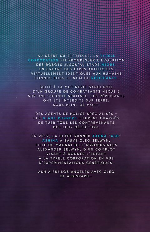 Ash, la Blade Runner qui hait les replicants, poursuit sa plongée vertigineuse dans l'atmosphère moite du Los Angeles inspiré par le roman de Philip K. Dick. Elle doit assumer les conséquences de son enquête sur la disparition de la femme et de la fille d'un riche industriel. Mais une nouvelle menace met sa vie en danger et la conduit dans les colonies spatiales...