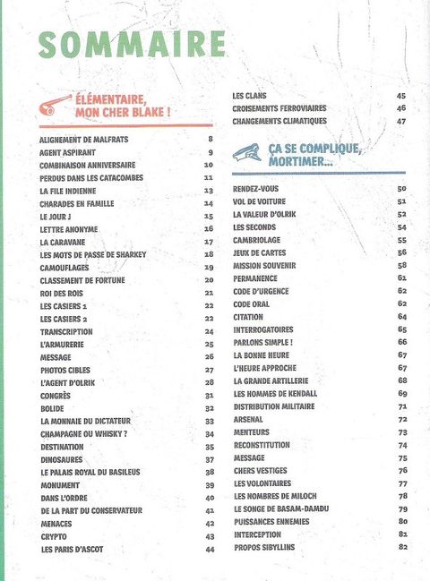 Messages codés, mystères scientifiques et mathématiques, complots à déjouer, secrets historiques... Avec Blake et Mortimer, les deux héros britanniques les plus célèbres de la bande dessinée, savourez ces nouvelles aventures d'un genre particulier : plus de 130 énigmes totalement inédites, qui mettront vos neurones à rude épreuve ! Raisonnement logique, capacité de déduction, sens de l'observation et goût du jeu sont quelques atouts dont vous devrez disposer pour résoudre ces multiples énigmes !