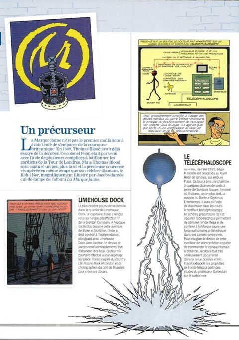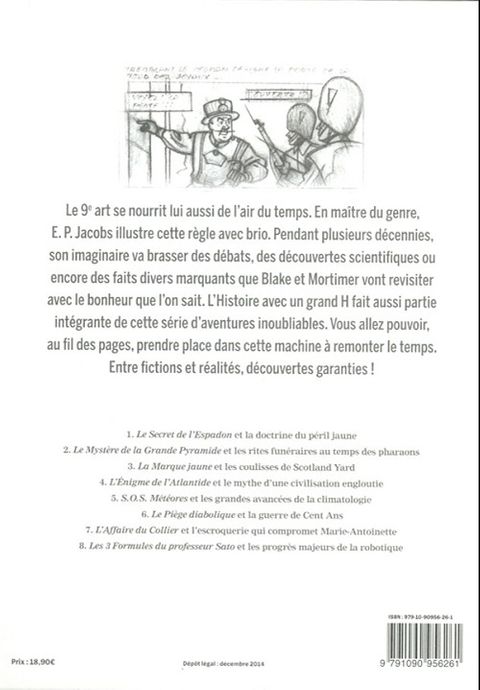 Le 9e art se nourrit lui aussi de l'air du temps. En maître du genre, E. P. Jacobs illustre cette règle avec brio. Pendant plusieurs décennies, son imaginaire va brasser des débats, des découvertes scientifiques ou encore des faits divers marquants que Blake et Mortimer vont revisiter avec le bonheur que l'on sait. L'Histoire avec un grand H fait aussi partie intégrante de cette série d'aventures inoubliables. Vous allez pouvoir, au fil des pages, prendre place dans cette machine à remonter le temps. Entre fictions et réalités, découvertes garanties!