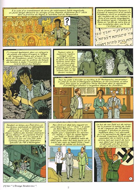 Voici presque 2 000 ans, l'apôtre Judas vendit le Christ aux Romains pour trente deniers d'argent. Blake et Mortimer doivent les retrouver avant qu'ils ne fassent à nouveau couler le sang. En effet, l'ancien SS von Stahl est prêt à tout pour s'emparer des pièces maudites, convaincu que leur pouvoir maléfi que lui permettra de régner sur le monde. Et pour ce faire, il s'adjoint les services d'Olrik après l'avoir fait évader de sa prison américaine. L'insaisissable «colonel», plus retors que jamais, est bien décidé à se venger de ses vieux adversaires.