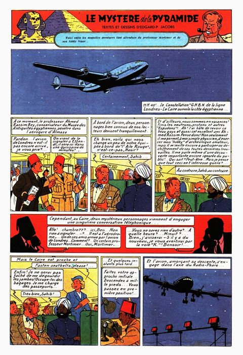 Le professeur Mortimer a décidé de passer ses vacances au Caire avec son fidèle serviteur, Nasir. Il compte retrouver le professeur Bey, conservateur du Musée des antiquités égyptiennes et l'aider à déchiffrer des papyrus datant de l'époque des Ptolémées. Il est entraîné sur les traces d'une organisation de trafic d'antiquités. Version originale parue dans "Le journal de Tintin".