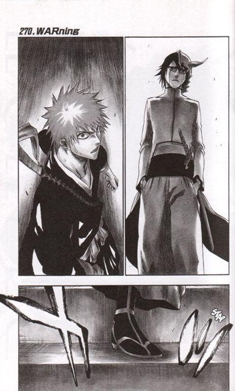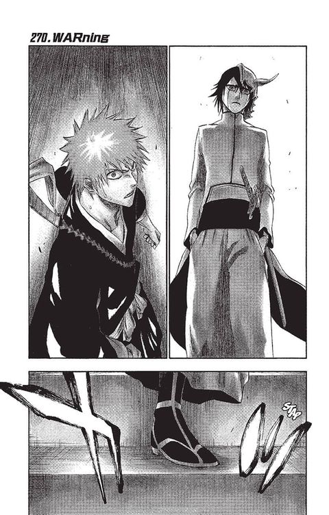 Chigo se retrouve face à Ulquiora, l'Espada numéro 4 venu pour lui apprendre la mort de Rukia, mais surtout le défi er en combat singulier ! Afi n d'écourter le duel, Ichigo met toutes ses forces dans la bataille, mais même ses pouvoirs de Hollow ne peuvent rien face à l'ennemi, qui lui transperce le coeur ! Pendant ce temps, Orihime subit les tortures de ses geôlières, avant d'être secourue par Grimmjow. Ce dernier décide de se servir d'elle pour guérir Ichigo afi n de régler ses comptes avec lui.