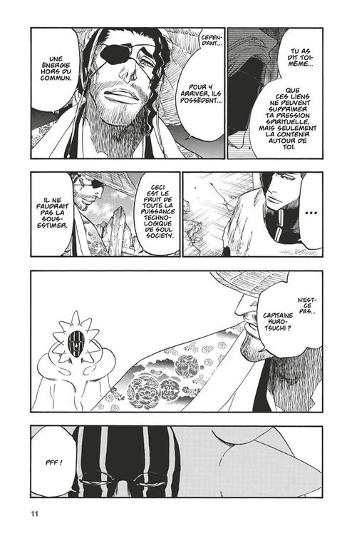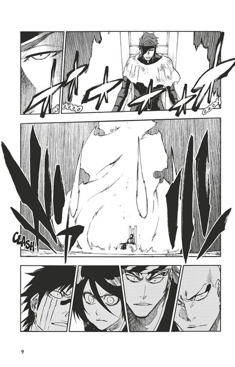 Alors que Rukia et les autres ne sont pas encore remis du choc de l'apparition d'Aizen, voilà que les Stern Ritter survivants se présentent devant eux ! Pendant ce temps Ichigo, qui a été éjecté du Palais Royal, est reparti pour y rejoindre Yhwach. Et en chemin, il fait de drôles de retrouvailles !