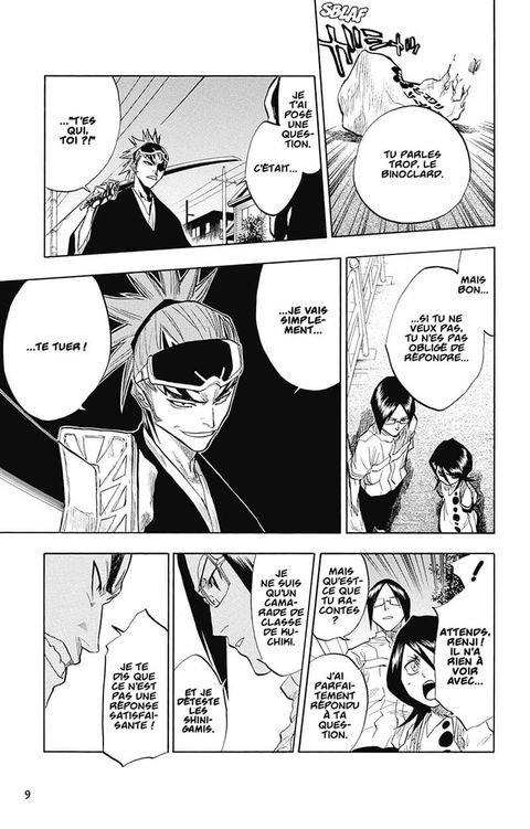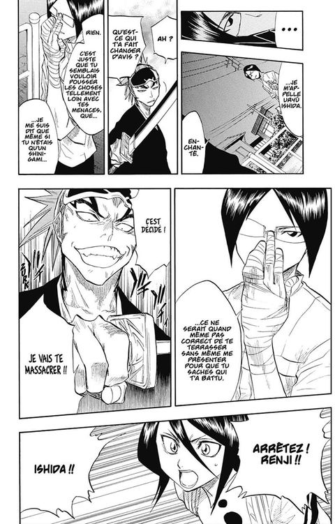 Adolescent de quinze ans, Ichigo Kurosaki possède un don particulier : celui de voir les esprits. Un jour, il croise la route d'une belle shinigami (un être spirituel) en train de pourchasser une ""âme perdue"", un esprit maléfique qui hante notre monde et n'arrive pas à trouver le repos. Mise en difficulté par son ennemi, la jeune fille décide alors de prêter une partie de ses pouvoirs à Ichigo, mais ce dernier hérite finalement de toute la puissance d'un shinigami. Contraint d'assumer son nouveau statut, Ichigo va devoir gérer ses deux vies : celle de lycéen ordinaire, et celle de chasseur de démons... « Bleach » est un manga d'action au rythme trépidant, au graphisme soigné et à l'intrigue palpitante.