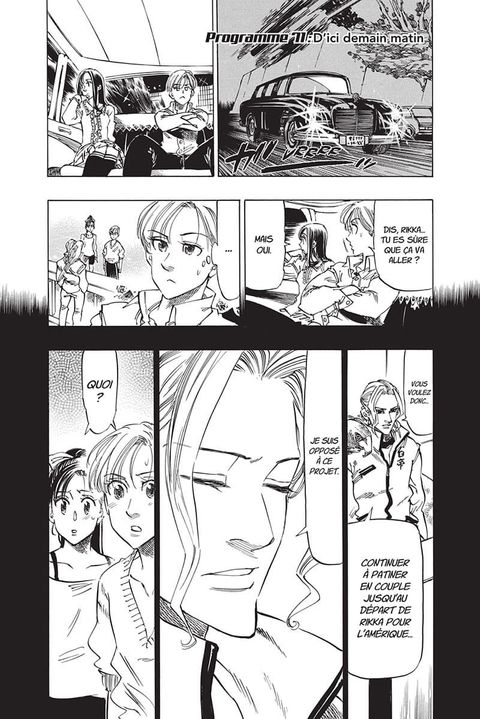 Rikka, ma partenaire, a essayé de me faire croire qu’elle voulait plus patiner en couple avec moi... Le sale plan ! Mais heureusement, j’ai réussi à la convaincre de participer au tournoi junior ! On arrive en demi-finale et on se retrouve face à nos potes Jin Gotô (le génie) et Koyuki Sakurada (la petite fée de Hakutei). Le morceau imposé, c’est Carmen, un opéra qui décrit un amour passionnel entre un homme et une femme... pas facile à interpréter pour des ados de 13 ans ! Comment on va faire pour se mettre dans la peau de nos personnages ?