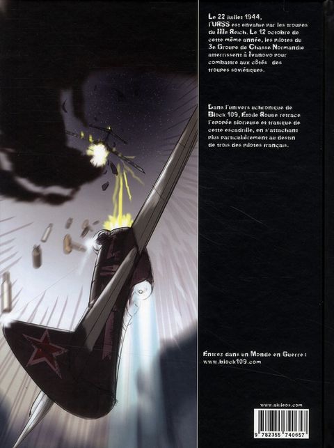 Le 22 juillet 1944, l'URSS est envahie par les troupes du IIIe Reich. Le 12 octobre de cette même année, les pilotes du 3e Groupe de Chasse «Normandie» atterrissent à Ivanovo pour combattre aux côtés des troupes soviétiques. À travers Etoile Rouge, c'est l'épopée glorieuse et tragique de cette escadrille que les auteurs du remarqué «Block 109» vous proposent de suivre, en s'attachant plus particulièrement au destin de trois de ses pilotes français.