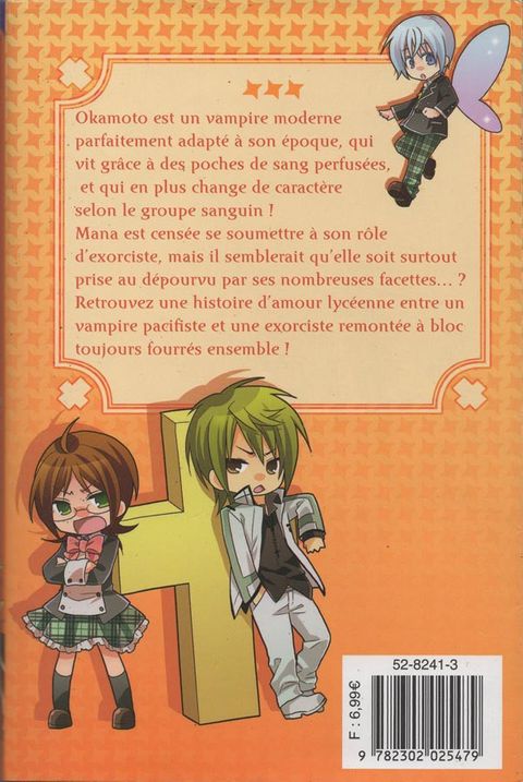 Mana est une jeune lycéenne comme les autres au détail près qu'elle est aussi membre d'un ordre religieux d'exorcistes traqueurs de vampires ! Elle se trouve chargée d'une mission de la plus haute importance : retrouver le vampire que le groupe recherche depuis des années sans succès. Il s'avère que sa quête ne sera pas bien longue puisque ce dernier se trouve être un de ses camarades de classe !!! Mais depuis tout ce temps la race des suceurs de sangs a évolué, il ne s'agit plus de tuer des jeunes vierges innocentes et fuir la lumière du jour, non ! Aujourd'hui, le vampire ressemble à un pauvre lycéen anémique qui se ballade avec son pied à perfusion partout où il va ! Désespérée de ce lamentable spectacle, la jeune exorciste imagine dors et déjà sa carrière aux oubliettes. Cependant, d'autres créatures de l'ombre vont se manifester et ses talents de chasseuse de démons vont pouvoir s'exprimer aux côtés de son nouveau compagnon, Okamoto, le vampire sous perfusion !