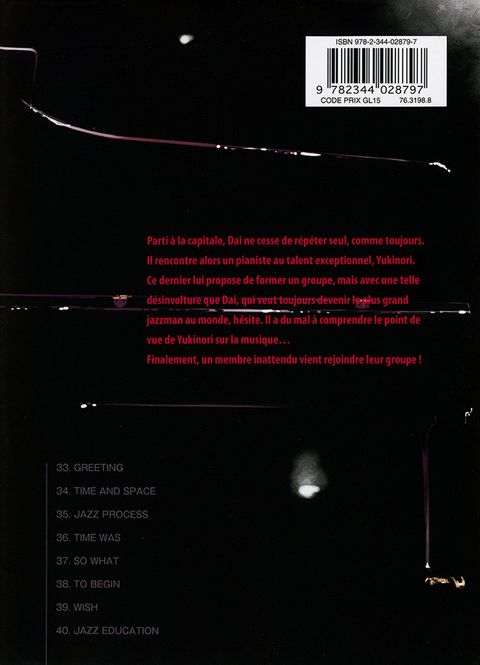 Parti à la capitale, Dai ne cesse de répéter seul, comme toujours. Il rencontre alors un pianiste au talent exceptionnel, Yukinori.Ce dernier lui propose de former un groupe, mais avec une telle désinvolture que Dai, qui veut toujours devenir le plus grand jazzman au monde, hésite. Il a du mal à comprendre le point de vue de Yukinori sur la musique...Finalement, un membre inattendu vient rejoindre leur groupe !