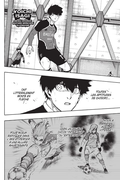 Je trouve ce manga génial, les graphismes sont sympa et j'adore le thème (le football japonais)il y a plein de rebondissements grâce aux éveils et a ego je trouve que c'est bien d'avoir rajouté des stars de clubs internationaux et les meilleurs joueurs de foot au monde