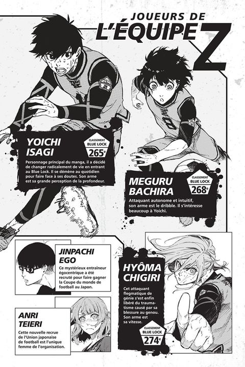 Je trouve ce manga génial, les graphismes sont sympa et j'adore le thème (le football japonais)il y a plein de rebondissements grâce aux éveils et a ego je trouve que c'est bien d'avoir rajouté des stars de clubs internationaux et les meilleurs joueurs de foot au monde