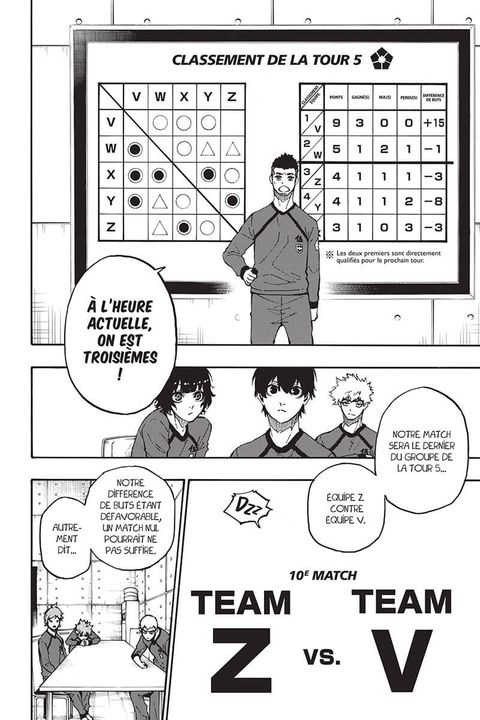 Yoichi Isagi et la team z sont aux portes de l'élimination. Il ne reste plus qu'un match, avec un joueur en moins, le traître Wataru contre l'équipe v et l'incroyable Nagi. Un tome 4 excellent, des personnages toujours plus intéressants et de l'action non stop.