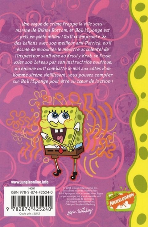 Une vague de crime frappe la ville sous-marine de bikini bottom, et bod l'éponge est pris en plein milieu ! qu'il " emprunte " des ballons avec son meilleur ami patrick, qu'il essaie de maquiller le meurtre accidentel de l'inspecteur sanitaire au krusty krab, se fasse voler son bateau par son instructrice nautique, ou encore qu'il combatte le mal aux côtés d'un homme-sirène vieillissant, vous pouvez compter sur bob l'éponge pour être au coeur de l'action !