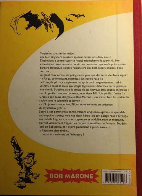 Surgissant soudain des neiges, une bien singulière créature apparut devant Bob et Bill ! Soudain, l'oeil de Bob Marone pétilla et il aspira goulûment, à pleins naseaux, la fragrance bien-aimée. le parfum enivrant de l'Aventure ! Des aventures inédites en album, dont une encore jamais publiée à ce jour, composent ce nouvel opus des aventures de Bob Marone. Et pour ce tome, le célèbre duo Yann et Conrad est rejoint par Yoann, le dessinateur de Spirou.