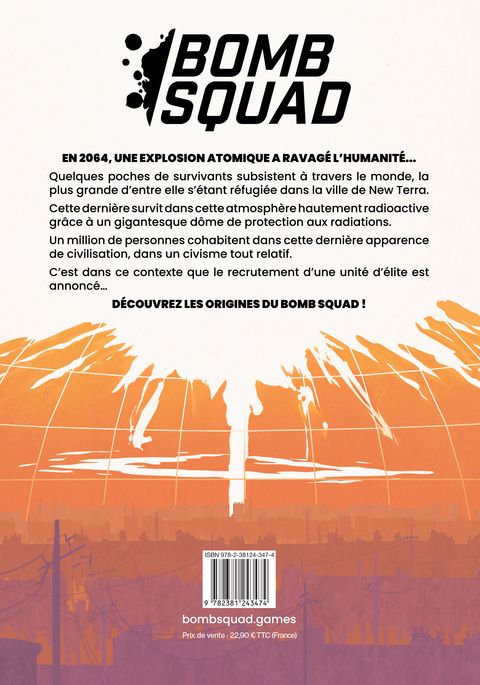 En 2064, UNE EXPLOSION ATOMIQUE A RAVAGÉ L'HUMANITÉ... Des derniers vestiges de population survivent dans la ville de New Terra. Cette dernière subsiste dans cette atmosphère hautement radioactive grâce à un gigantesque dôme de protection. Un million de personnes cohabitent dans cette dernière apparence de civilisation, dans un civisme tout relatif. Pour subvenir à leur besoins, notamment en termes de ressources (electricité, médicaments, minerais), des expéditions en dehors du dôme sont nécessaires. Mais les terres radioactives extérieures regorgent de nombreux dangers. Il a fallu créer une unité d'élite pouvant s'y aventurer. Cette unité s'appelle le BOMB SQUAD. Découvrez son histoire.