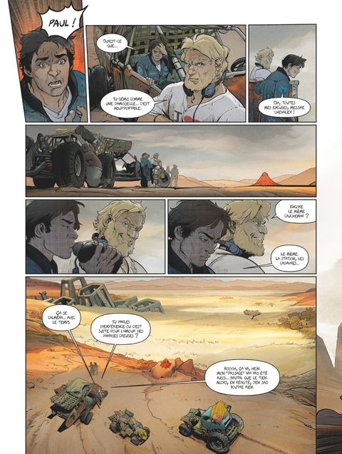 Naufragé temporel, échoué au milieu de nulle part : et vous, que feriez-vous ? Paul est né en France en 1985. Il est astronaute, membre d’équipage de l’ISS. Mais depuis le crash de la station, sa vie a basculé. Ce qu’il vit dépasse les lois de la physique… Désormais, il pourchasse des orages temporels en compagnie de Bohémond, un chevalier du XIIIe siècle sur une planète perdue à l’autre bout de l’Univers. Paul et Bohémond, ainsi que plusieurs milliers d’autres humains se sont retrouvés propulsés loin de leur époque par des orages temporels. Les rangs de ces exilés s’agrandissent chaque jour avec de nouveaux venus, comme Kyle, un étudiant tout droit sorti du XXe siècle. En réalité sur cette planète sans astres, nul ne sait en quelle année nous sommes ni comment hommes et bêtes franchissent « le passage ». La communauté, établie à Newtown, tâche de préserver la paix civile malgré les coutumes et croyances de chacun. Certains nourrissent des théories farfelues tandis que d’autres explorent en groupes les environs. Paul, gardant un esprit scientifique, essaie quant à lui de comprendre comment fonctionne ce phénomène insolite et pourquoi les exilés viennent de mille ans d’Histoire ? Mais quand une armée d'hommes et de femmes à la peau bleue parvient aux abords de Newtown, le fragile équilibre de cette microsociété risque de voler en éclats... Réalisée par Brice Cossu, Alexis Sentenac et Yoann Guillo, coauteurs qui ont rendu un vibrant hommage en BD au célèbre Goldoraken 2021 (éditions Kana), renforcés ici par le scénariste Vincent Brugeas et le dessinateur Ronan Toulhoat (auteurs du Roy des Ribauds, La République du Crâne, Conan le Cimmérien...), cette nouvelle série SF aux parfums survivalistes nous promet une aventure des plus explosives !