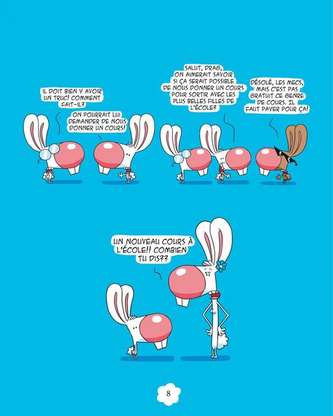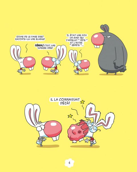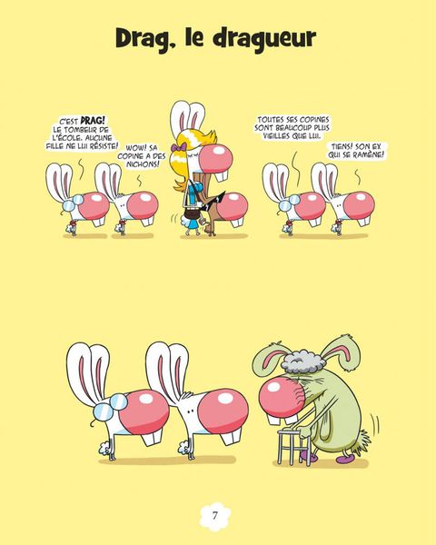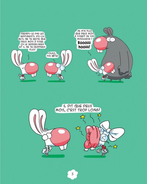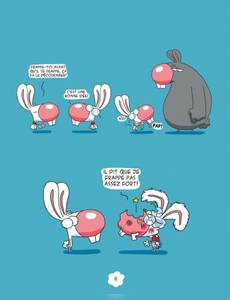 Boni est un mignon petit lapin gentil et naïf qui vit dans un monde hostile. Son meilleur ami, Mio, est bigleux et assez crétin, puisqu'il s'acharne à draguer Brigitte, une lapine qui le méprise ouvertement. Son pire ennemi, Bruno, ne s'exprime qu'à grands coups de poing dans la figure et adore prendre Boni comme interlocuteur. Son grand-père est un vieux râleur sadique et méprisant. Sa baby-sitter, Mme Paupine, a gagné le titre de pire gardienne d'enfants au monde et n'a pas eu besoin de forcer son talent pour remporter le prix. Le plus grand mérite de Boni est de garder sa bonne humeur et son enthousiasme dans un monde où il se passe rarement trois cases sans qu'il lui arrive une grosse catastrophe dans la tronche. Pour notre plus grande hilarité.