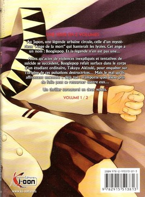 au japon, une légende urbaine circule, celle d'un mystérieux "" ange de la mort "" qui hanterait les lycées. cet ange a un nom : boogiepop. et la légende n'en est pas une... alors qu'actes de violences inexpliqués et tentatives de suicide se succèdent, boogiepop refait surface dans le corps d'un étudiant ordinaire, takaya akizuki, pour enquêter sur l'origine de ces pulsations destructrices... mais le mal qu'ils affrontent ensemble a déjà tué : n'importe quel élève pris de folie peut se retourner contre eux...